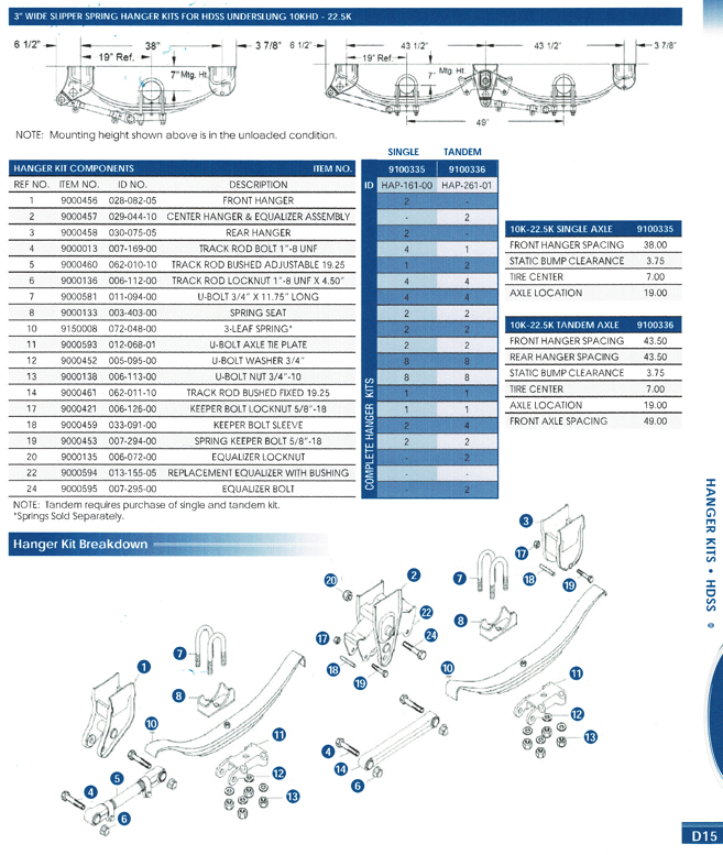 (1) Complete HDSS Hutch Tandem Suspension Kit
